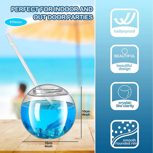 Fish Bowls for Drinks with Lids and Straws 22 oz Fishbowl Cups Clear Plastic Fish Bowls Reusable Fish Bowl Drink Cups Spherical