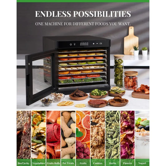 Stainless Steel Food Dehydrator with 8 Trays, Digital Adjustable Timer & Tempe Control Food Dryer Machine for Jerky, Vegetable
